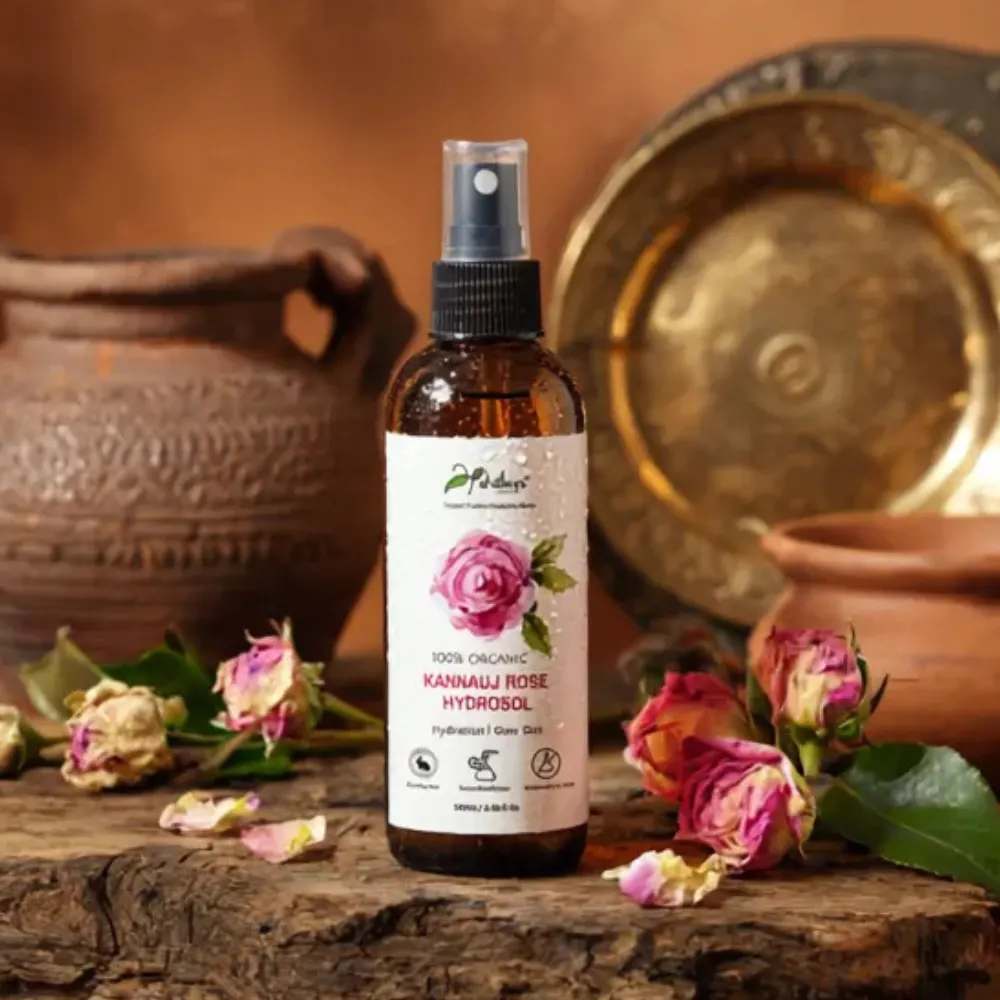 100% pure organic Kannauj rose water. Hydrates, soothes, and balances skin naturally with gentle floral care.